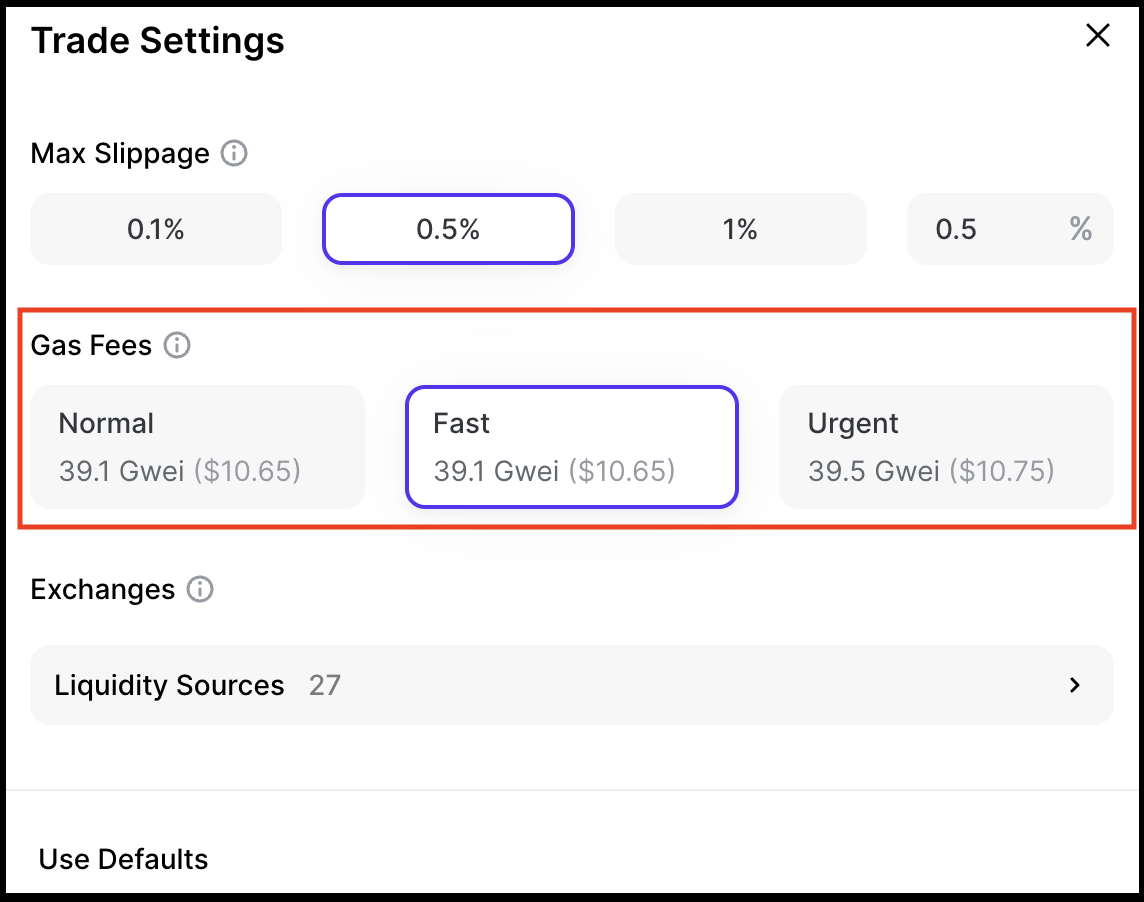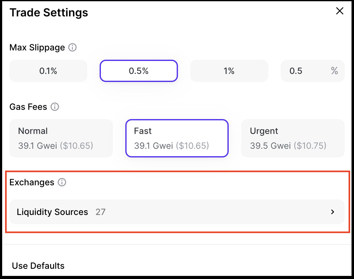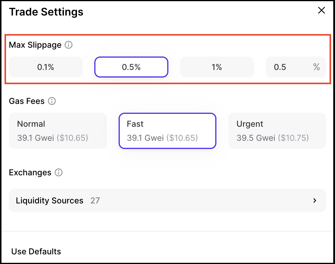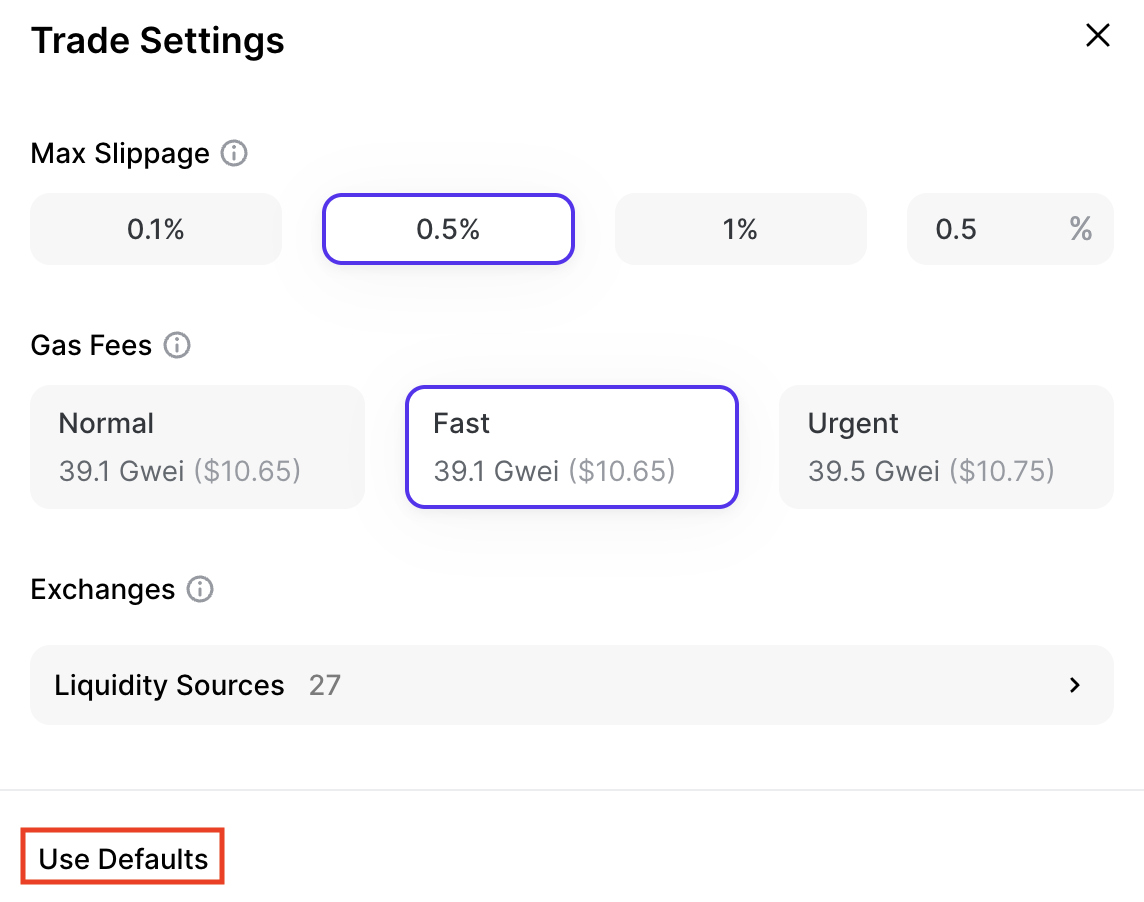 *Note: we recommend making changes to the Trade Settings section if you are already familiar with decentralized finance (DeFi) trading.