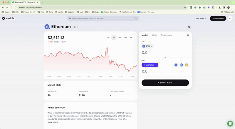 If you are on a mobile device and have the Rabby wallet app installed, you can trade on Matcha through Zerion's in app browser: