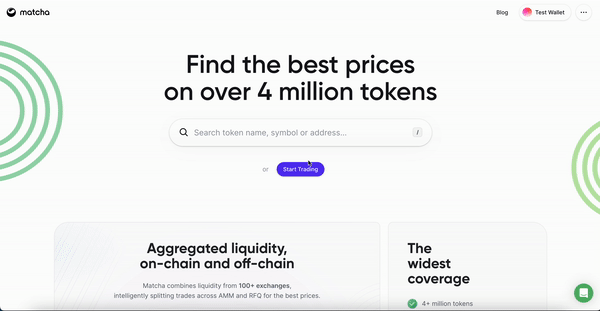 Connect your wallet to Matcha.