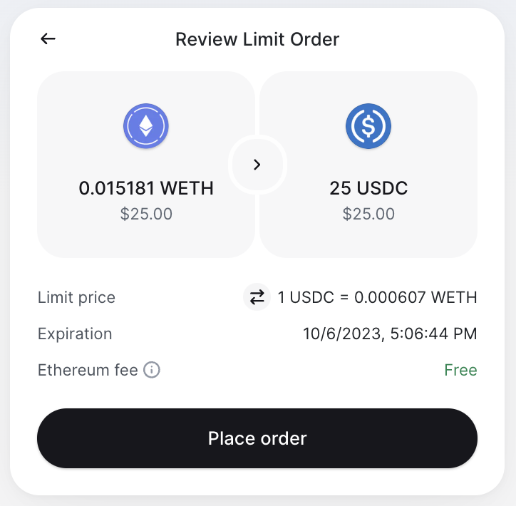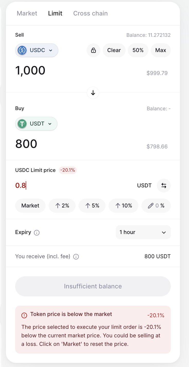 Note: You will be charged a fee by the blockchain network if you manually cancel your limit order.