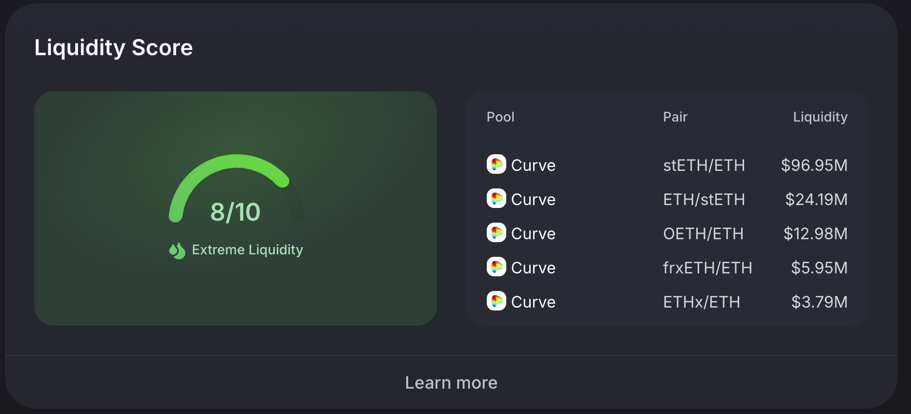 A token with a high Liquidity Score can become illiquid within the timespan of a single block. The Liquidity Score is not legal or investment advice and should be considered along with other factors.